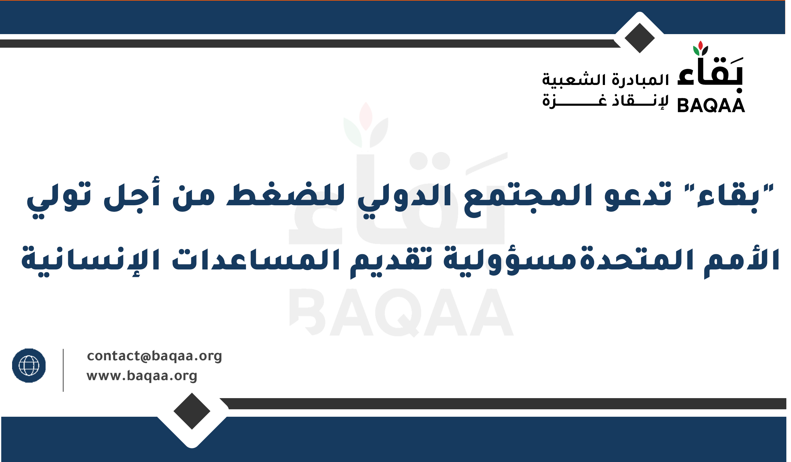 "بقاء" تدعو المجتمع الدولي للضغط من أجل تولي الأمم المتحدة مسؤولية تقديم المساعدات الإنسانية في ظل التدهور الإنسا...